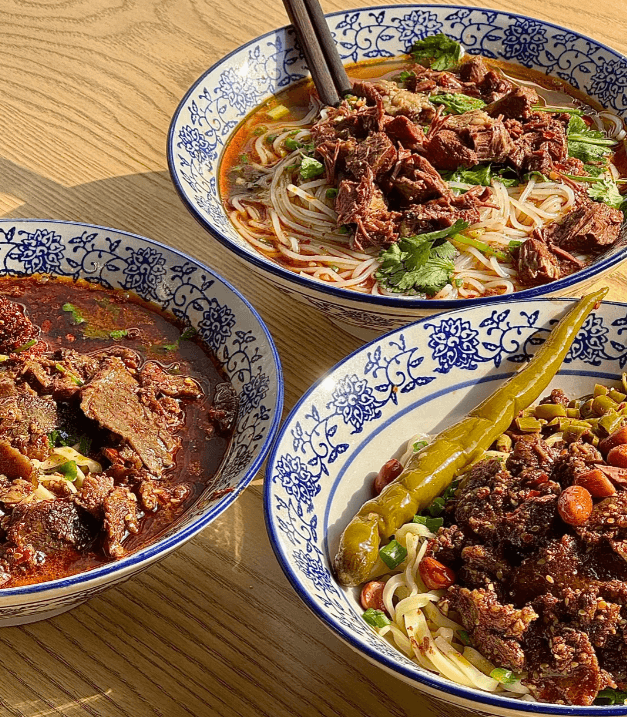 劉聾子粉館 (張家界市内): 牛肉の「臊子」が人気で、観光客にも食べやすい味。日本語メニューがあるかも。