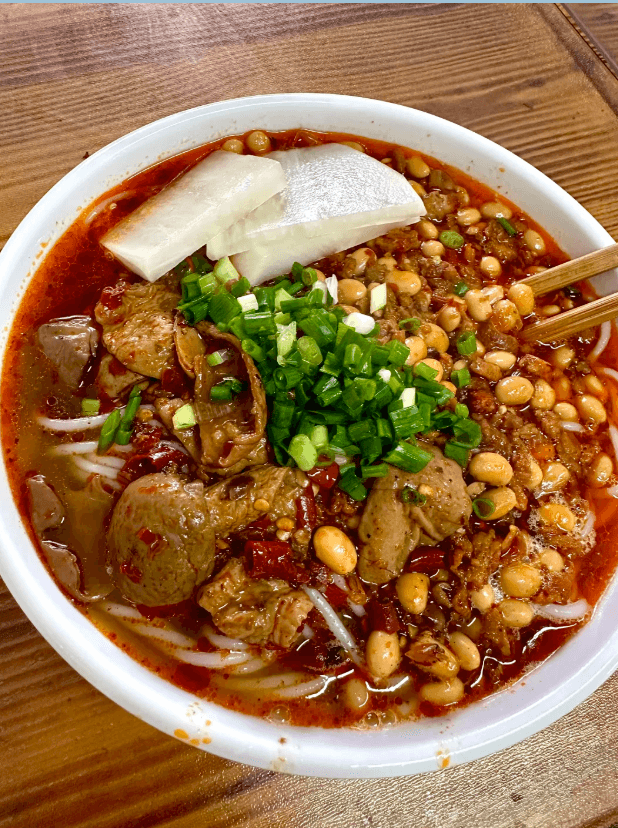 美食の特徴と魅力 張家界の米粉と緑豆麵の魅力は、何と言ってもその素朴な味わいと豊富な「臊子(サオズー具材) **です。