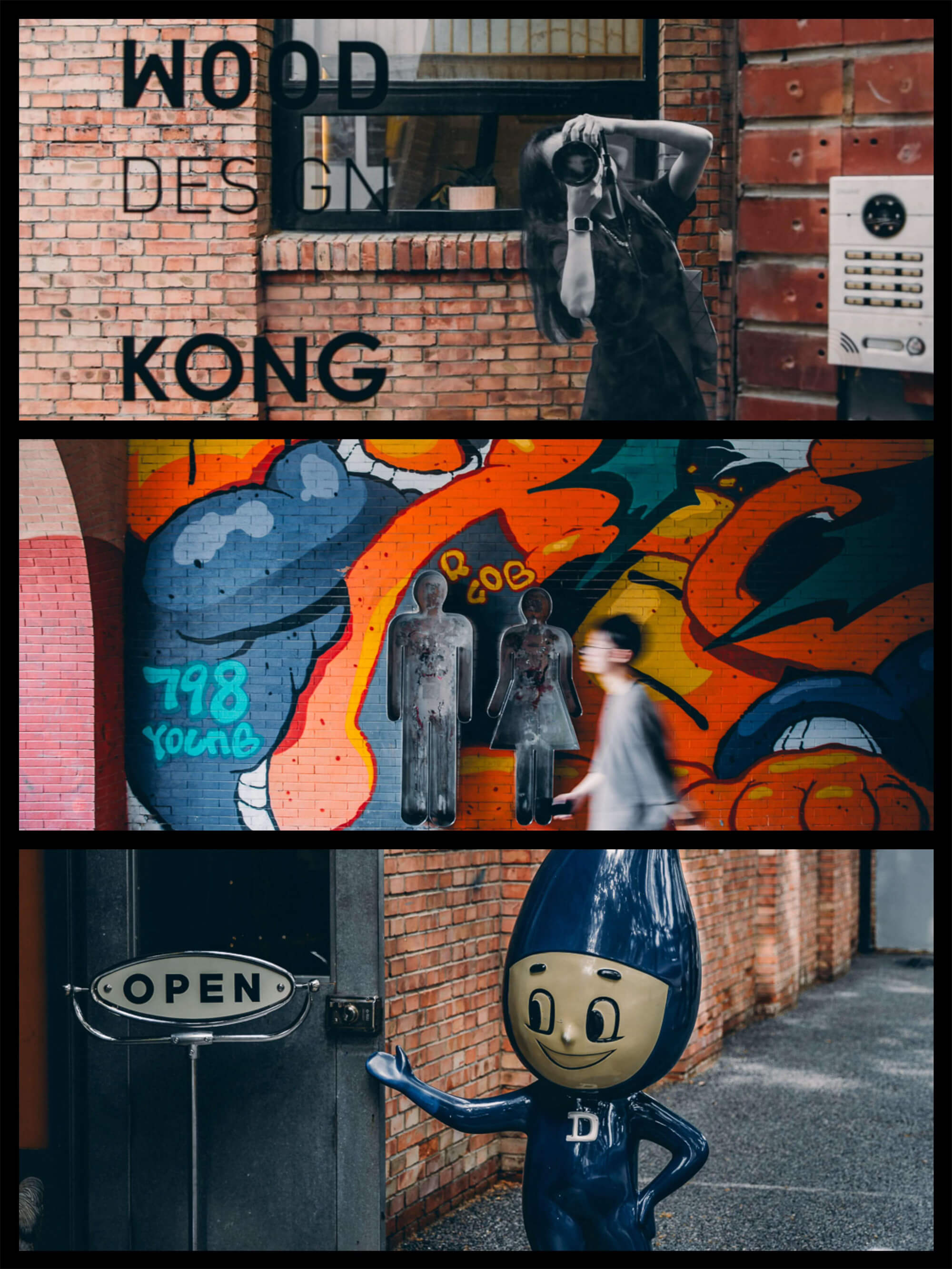 - 彫刻と落書き:エリア内にはユニークな彫刻やグラフィティが点在し、芸術的な雰囲気が漂います。写真撮影スポットとしても人気です。