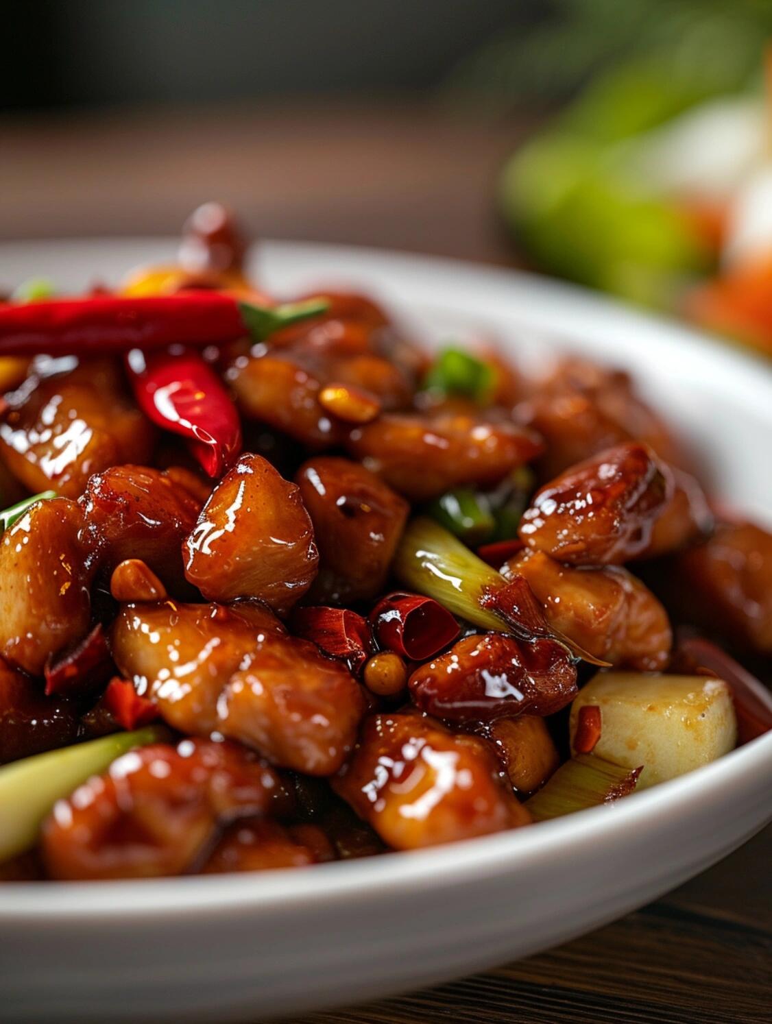- 特徴: 宮保鶏丁は、酸味、甘味、辛味が絶妙に組み合わさった料理です。さいの目に切った鶏肉、ピーナッツ、乾燥唐辛子、青ネギを主な材料として使用します。鶏肉は柔らかく、ピーナッツは歯ごたえがあり、酸味と甘味、辛味が絶妙に調和しており、食欲をそそる四川料理です。
