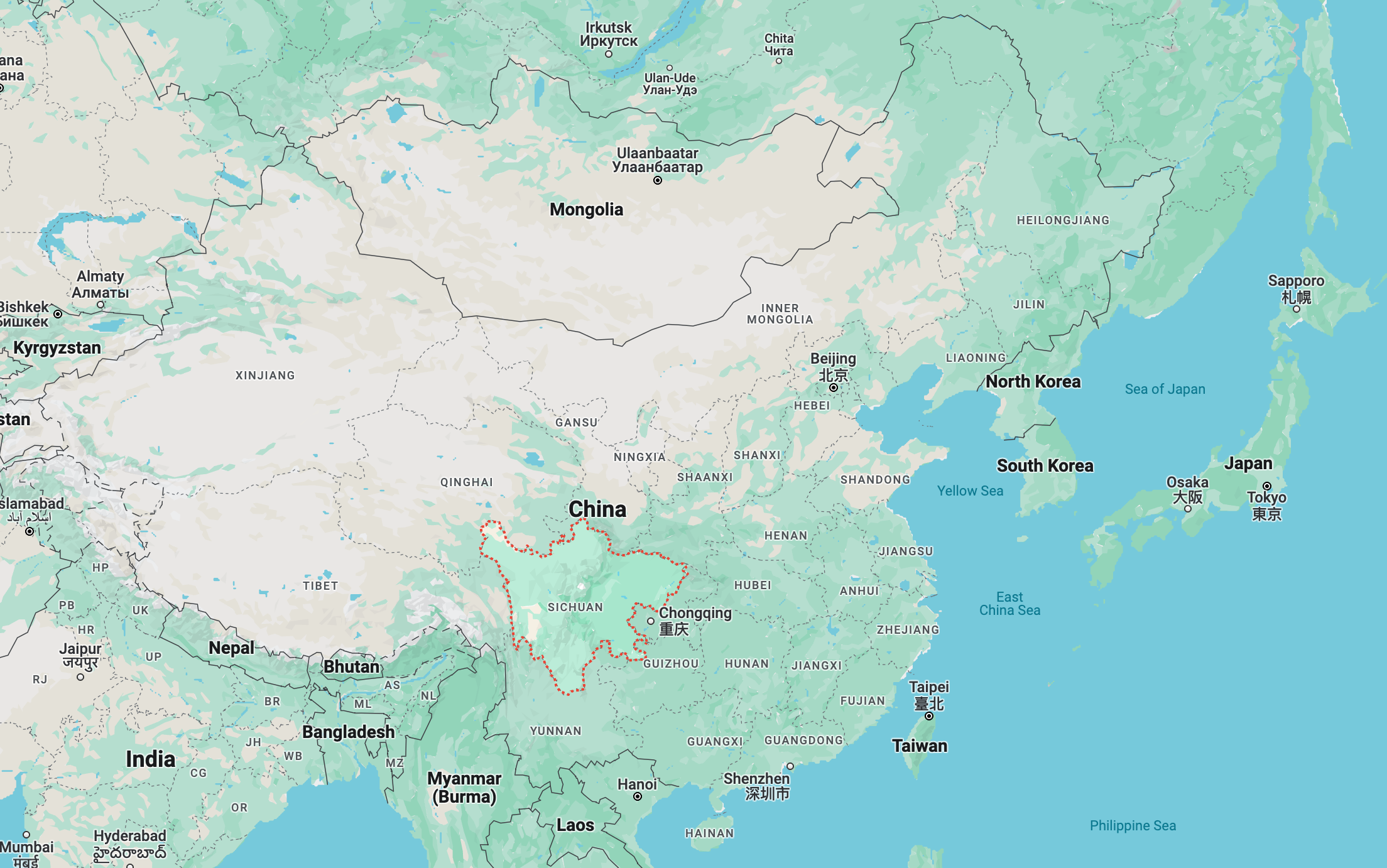四川省は中国西南に位置しています。面積は約48.5万平方メートルあり、日本国土面積の1.28倍で、中国5番目の省です。