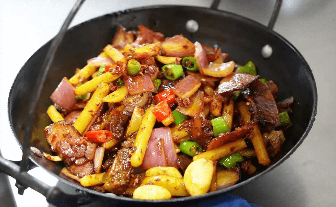 この料理は、湘西(湖南省西部)の人々の豪爽な性格を象徴する一品です。伝説によると、明代嘉靖年間、土家の兵士たちは出征前に家で保存していた腊肉(燻製豚肉)、豆腐、ダイコンなどを一鍋で煮込み、満腹になった後に勇敢に戦ったことから、この名がついたと言われています。