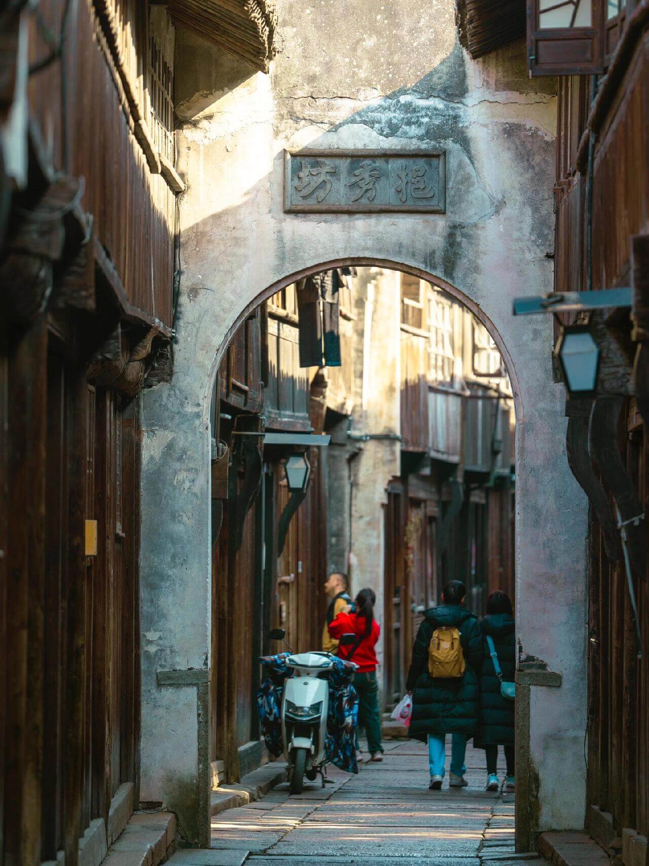 東栅は烏鎮で最も古いエリアで、伝統的な水郷の雰囲気が漂っています。江南水郷の伝統的な建築や昔ながらの生活の様子が多く残されており、烏鎮の原風景を体験するには最適な場所です。曲がりくねった石板の街道を歩くと、周囲には古い木造の家屋が並び、狭い運河が静かに流れ、小舟がゆっくりと進んでいる光景を見ることができます。東栅の魅力は、自然で時の流れを感じさせる古き良き美しさにあります。ここには、伝統的な中国の劇を鑑賞できる「東栅大劇場」や、藍染め布や手工木彫りなどの工芸品制作を体験できる工房もあります。