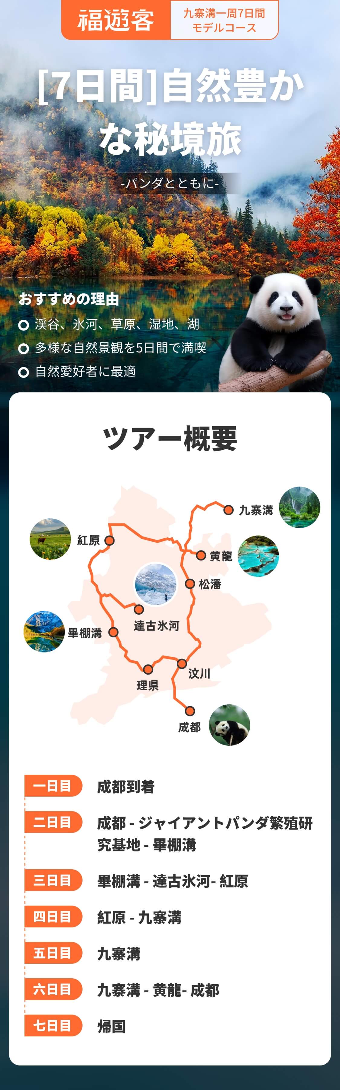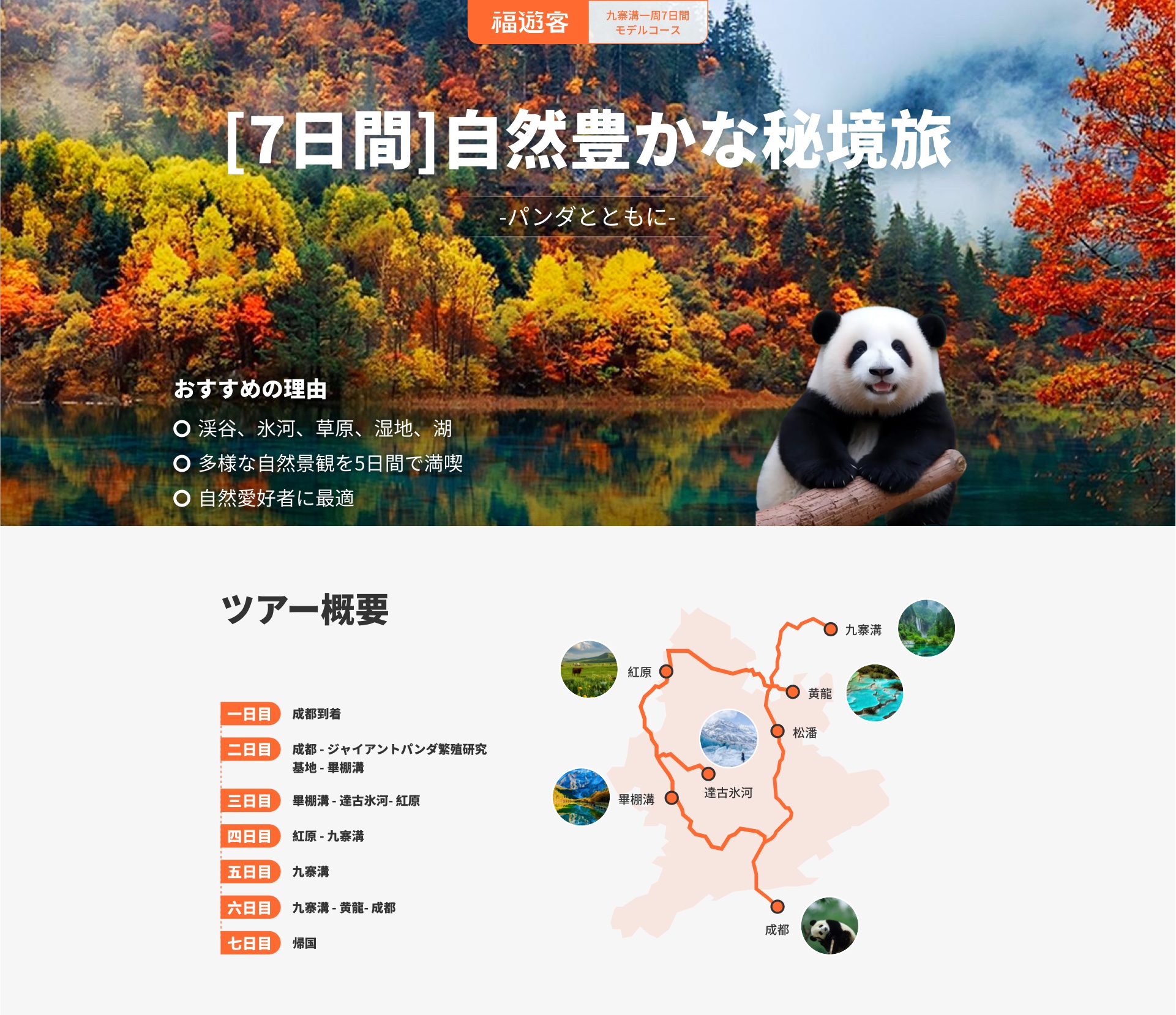 [7日間]九寨溝一周&パンダ基地!自然豊かな秘境旅