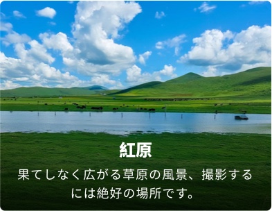 - 午後:紅原に向かい、広大な草原の風景を楽しみます。草原の景色を撮影するのに最適な場所です。