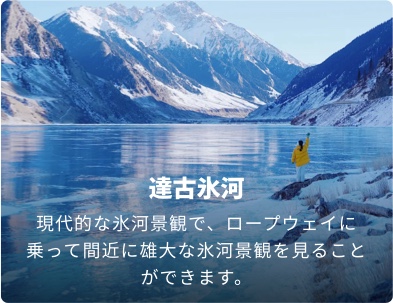 - 正午:「達古氷河」を訪れ、現代の氷河景観を楽しみます。ロープウェイに乗り壮大な氷河の景色を間近で観賞することができます。