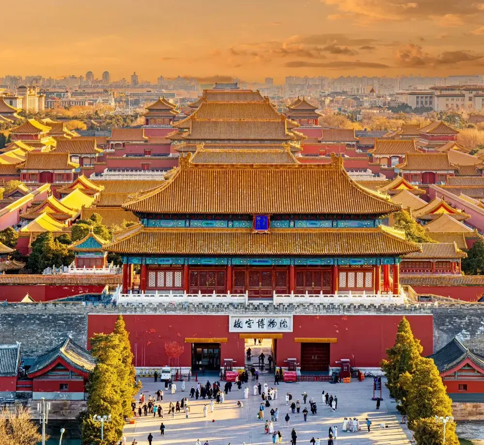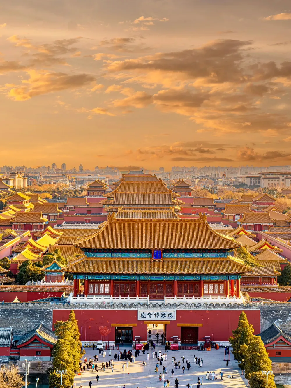 夕暮れ時、オレンジ色の夕日に染まる故宮を見下ろせば、まるで映画のワンシーンのような光景が広がります。静かに流れる時間の中で、歴史の息吹を感じながら、北京の美しさを胸に焼き付けましょう。