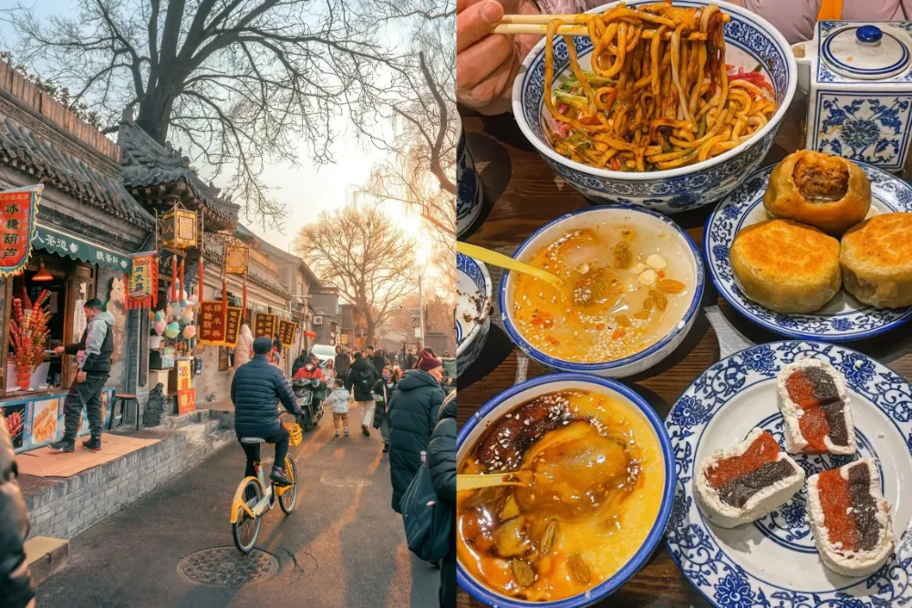 伝統的な北京の胡同(細い路地)を散策しながら、小吃(軽食)を楽しめるエリア。炸醤麺、氷糖葫蘆(キャンディーコーティングされたフルーツ)、驢打滾(もち米菓子)など、気軽に食べ歩きができます。