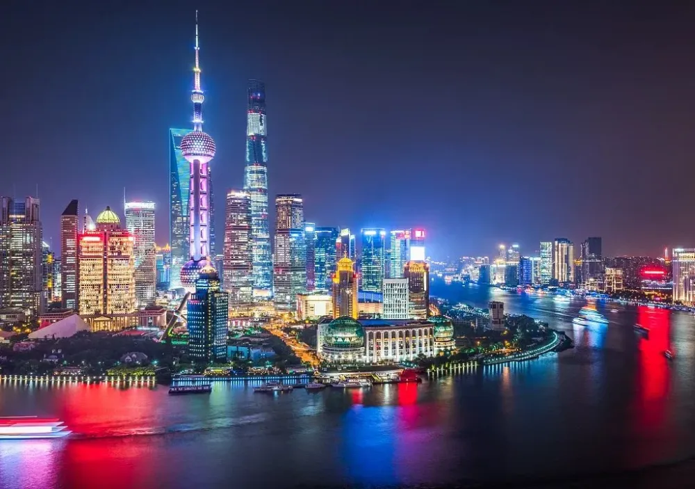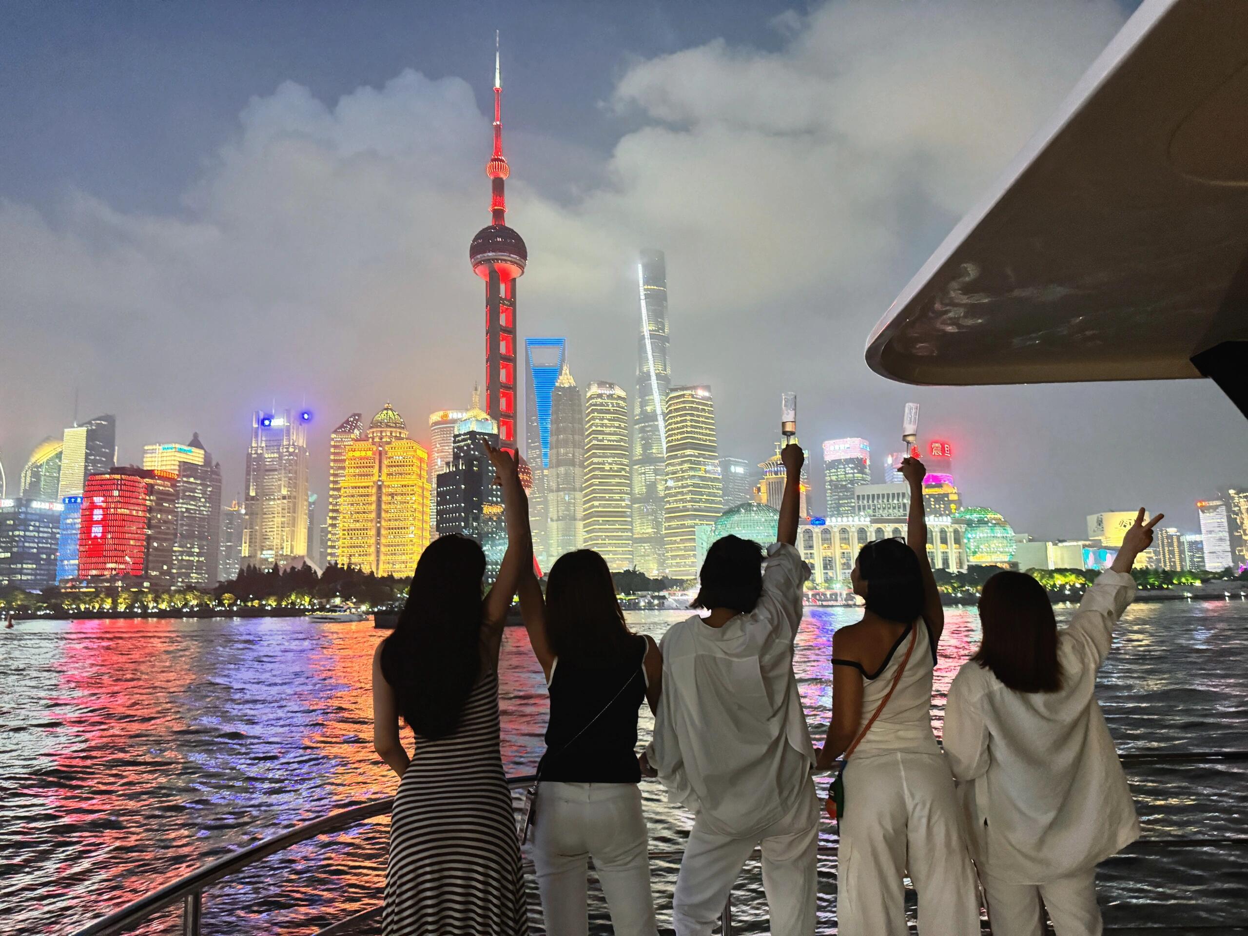 上海の象徴的なスカイラインを、ゆったりとクルーズ船から眺めるロマンチックな体験。