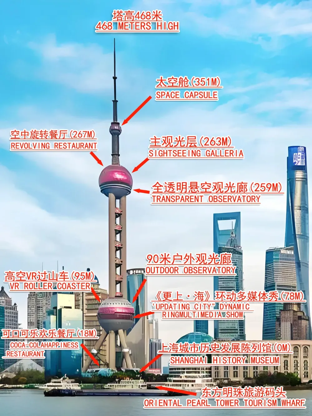 高さ468mの上海を代表するこのタワーでは、360度ガラス張りの展望フロアから浦東の未来都市と外灘の歴史的街並みを一望。透明な床の「スカイウォーク」で空中散歩のスリルも体験いただけます。雲を掴むような非日常感をお楽しみください。